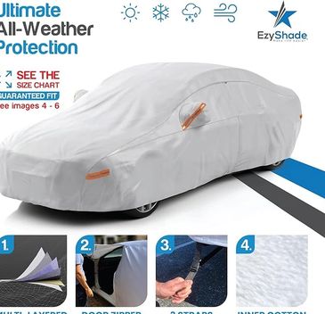 BEST FIT, BEST PROTECTION. Find your vehicle in the SIZE CHART. Don't persist with car covers that don't quite fit right. EzyShade Car Covers are extensively tested to achieve a custom-like fit for every vehicle in the size chart, GUARANTEED! (see the Size Chart in images 4 to 6)